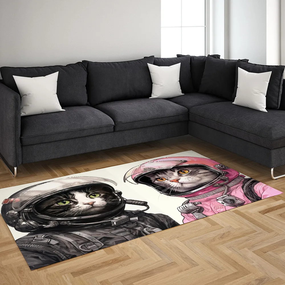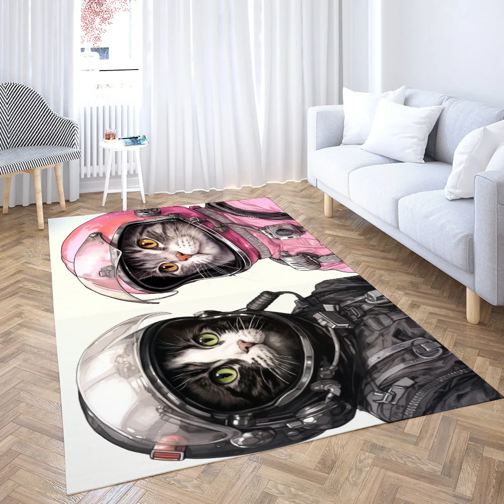 Astronaut Cat Gray and Pink Rug is made from soft material featuring an anti-slip bottom layer for added stability. Utilizing advanced thermal dyeing technology, vibrant colors are achieved with minimal fading over time. With a medium pile height, this rug exudes a soft and cozy ambiance, ideal for living rooms, bedrooms, and kitchens, while also suitable for placement under furniture.