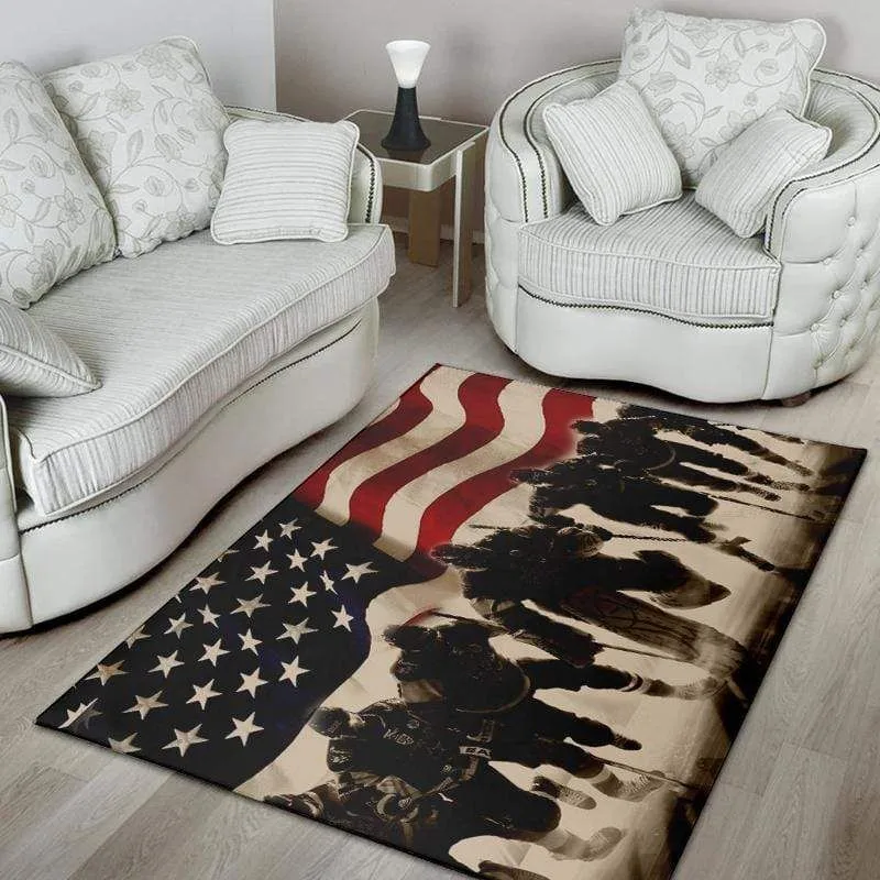 Team Spirit Hockey Decor Rug is made from soft material featuring an anti-slip bottom layer for added stability. Utilizing advanced thermal dyeing technology, vibrant colors are achieved with minimal fading over time. With a medium pile height, this rug exudes a soft and cozy ambiance, ideal for living rooms, bedrooms, and kitchens, while also suitable for placement under furniture.