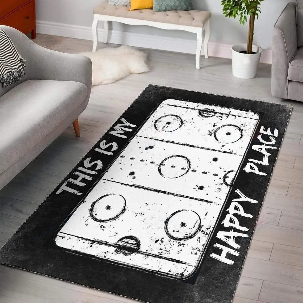 This Is My Happy Place Black White Decor Rug is made from soft material featuring an anti-slip bottom layer for added stability. Utilizing advanced thermal dyeing technology, vibrant colors are achieved with minimal fading over time. With a medium pile height, this rug exudes a soft and cozy ambiance, ideal for living rooms, bedrooms, and kitchens, while also suitable for placement under furniture.