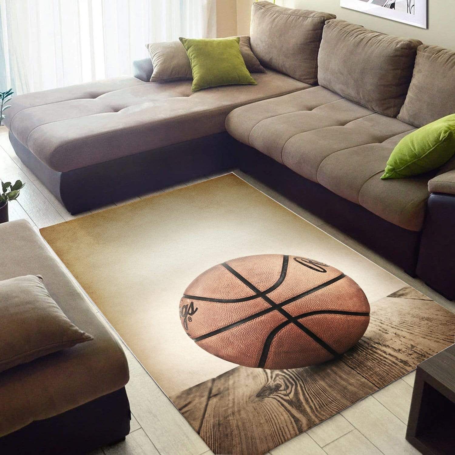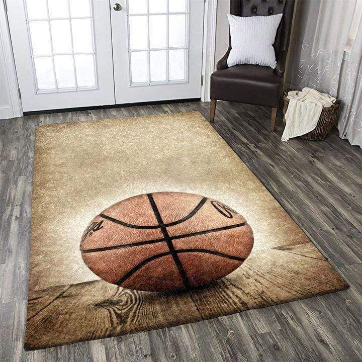 Vintage Basketball On Wood Decor Rug is made from soft material featuring an anti-slip bottom layer for added stability. Utilizing advanced thermal dyeing technology, vibrant colors are achieved with minimal fading over time. With a medium pile height, this rug exudes a soft and cozy ambiance, ideal for living rooms, bedrooms, and kitchens, while also suitable for placement under furniture.